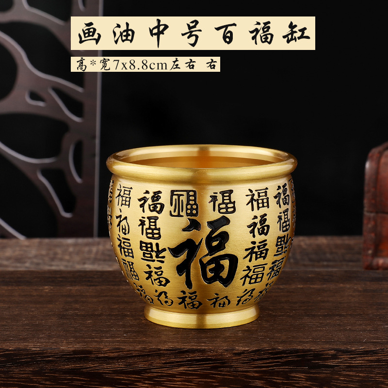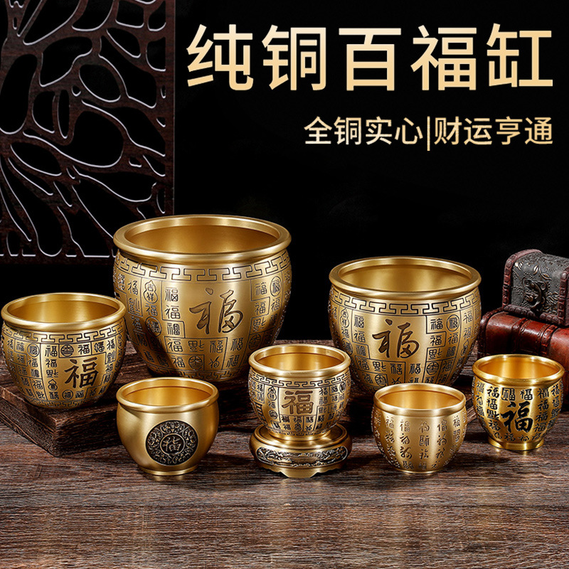纯黄铜百福聚财缸黄铜米缸铜香炉摆件聚宝盆